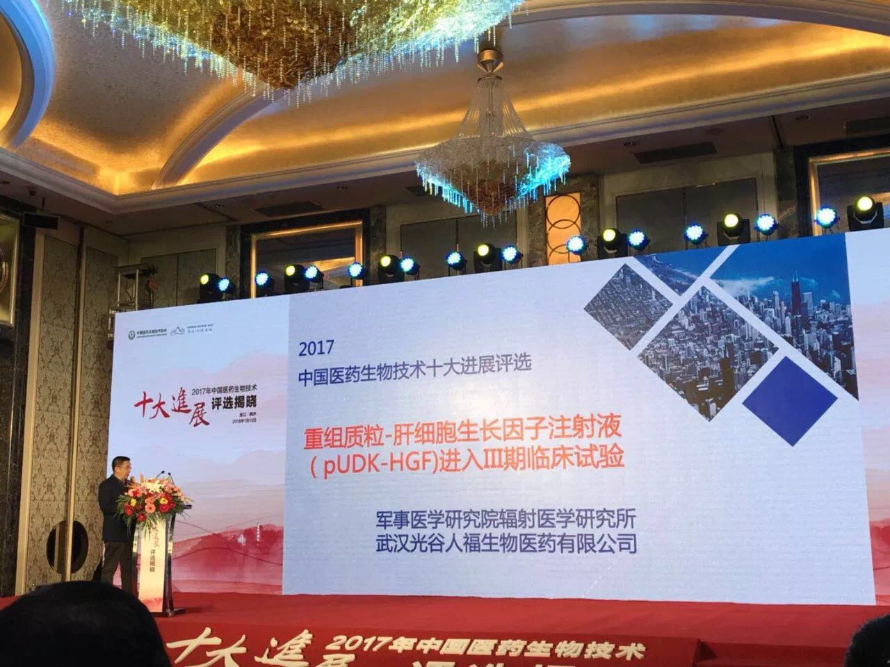 1月13日,由中国医药生物技术协会和《中国医药生物技术》杂志社共同主办的“2017年中国医药生物技术十大进展评选揭晓”活动在浙江桐庐举行,YY易游m6米乐集团的“重组质粒-肝细胞生长因子注射液进入Ⅲ期临床”项目最终入选。出席本次活动的嘉宾有评选专家团代表魏于全院士、程京院士,主办和承办单位的领导、投资人和企业家、中央及地方十余家媒体记者。