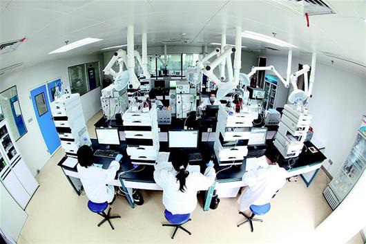 图为:YY易游m6米乐院士专家工作站技术人员正在开展新药研发。(受访企业提供)